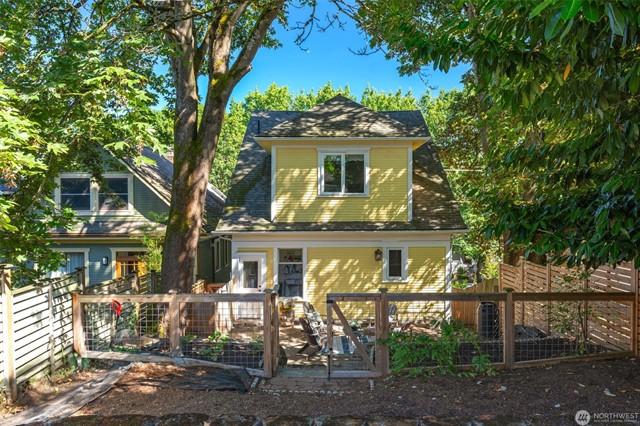 Storybook whimsical luxury awaits in this vintage-meets-contemporary gem! With classic charm, this studs- out remodeled 1906 home with modern updates is a haven. Enjoy sunlit spaces and lush greenery views. An open floorplan caters toward entertaining, and a lower level ADU brings great opportunity. Features include updated baths, appliances and kitchen, fresh carpet, fir floors and more. The fairytale backyard garden presents a separate studio crafted by nationally known photographer Jennifer Loomis to be her studio, perfect for creative endeavors. Located in the historic Central District, enjoy urban living with incredible eateries and great shopping. Walk score 90/100!