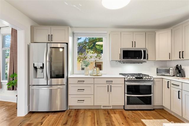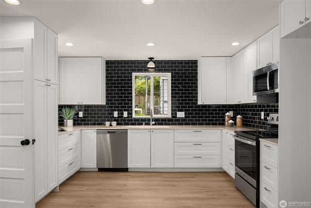Step into the perfect blend of historic charm and modern luxury in Seattle's Central District. Elevated above cherry tree-lined streets, this home offers seamless entertaining with open-concept living, gourmet kitchen, and covered porch. Retreat to the indulgent primary suite featuring a spa-like bathroom and walk-in closet, while two guest rooms share a full bath. Descend to the finished basement with two additional bedrooms, second kitchen, and living area. Outside, a fenced backyard and detached garage provide convenience. Built in 1920, meticulously renovated in 2023, it's perfect as a single-family home or legal duplex. Don't miss the chance to experience the epitome of Seattle living in this unique and sought-after residence!