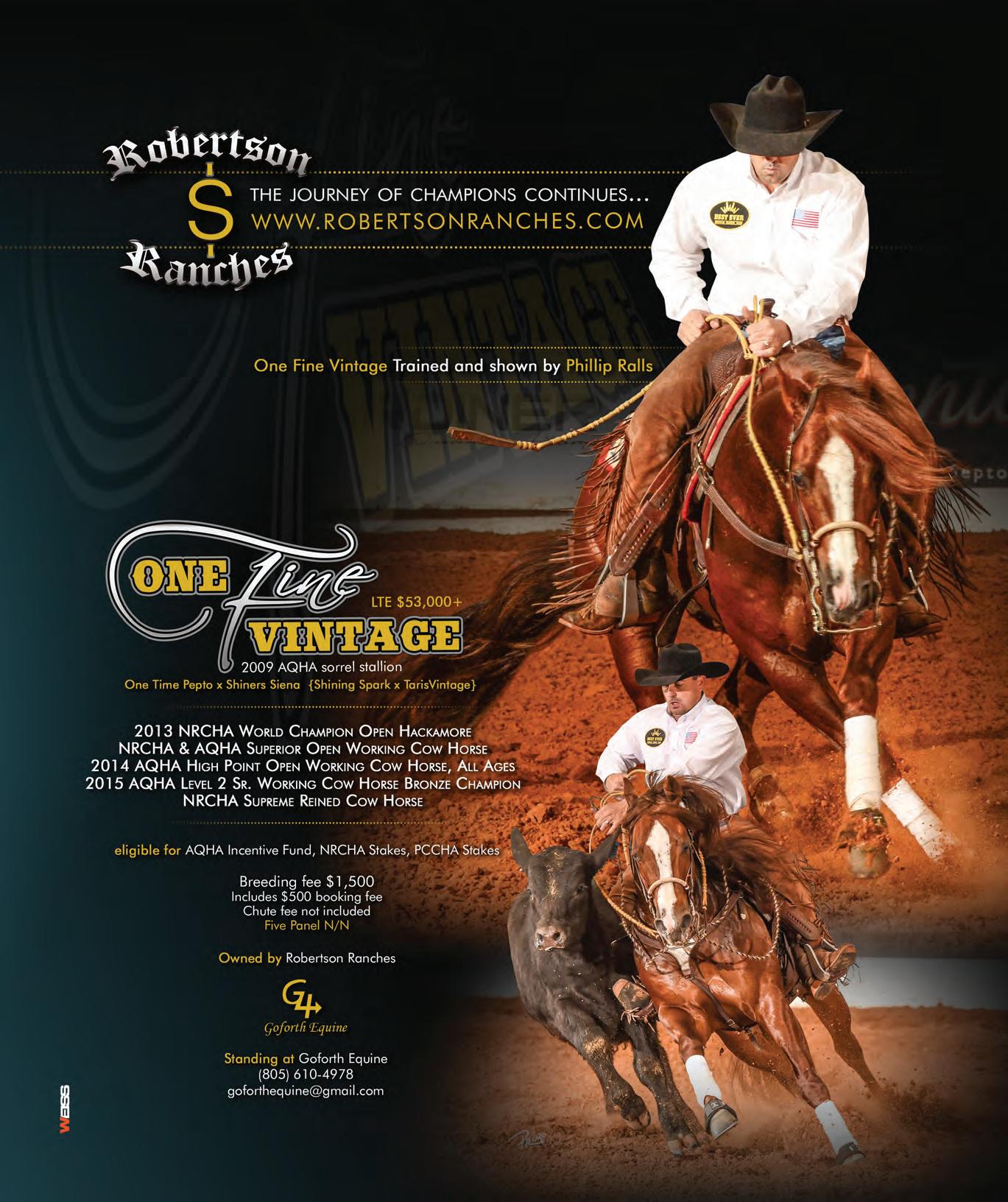 Reined Cow Horse News is published bi-monthly (six times a year). All contents are copyright of the National Reined Cow Horse Association. All rights reserved. No part of this publication may be reproduced, stored in a retrieval system or transmitted in any form or by any means, electronic, mechanical, photocopying or otherwise, without prior written permission from the NRCHA. Opinions expressed in articles and advertising in Reined Cow Horse News do not necessarily reflect the positions or opinions of the NRCHA or its officers and members. Accuracy of material is the sole responsibility of the authors. Unsolicited materials are submitted at the sender’s risk and the NRCHA accepts no responsibility for them. Please address all submissions to: Reined Cow Horse News, 1017 North Hwy 377, Pilot Point, Texas, 76258. Subscription rate is $25 a year. Periodical postage paid at Pilot Point, Texas, 76258 and additional mailing offices. USPS number, 024-906. POSTMASTER: Send address changes to Reined Cow Horse News, 1017 North Hwy 377, Pilot Point, Texas, 76258.