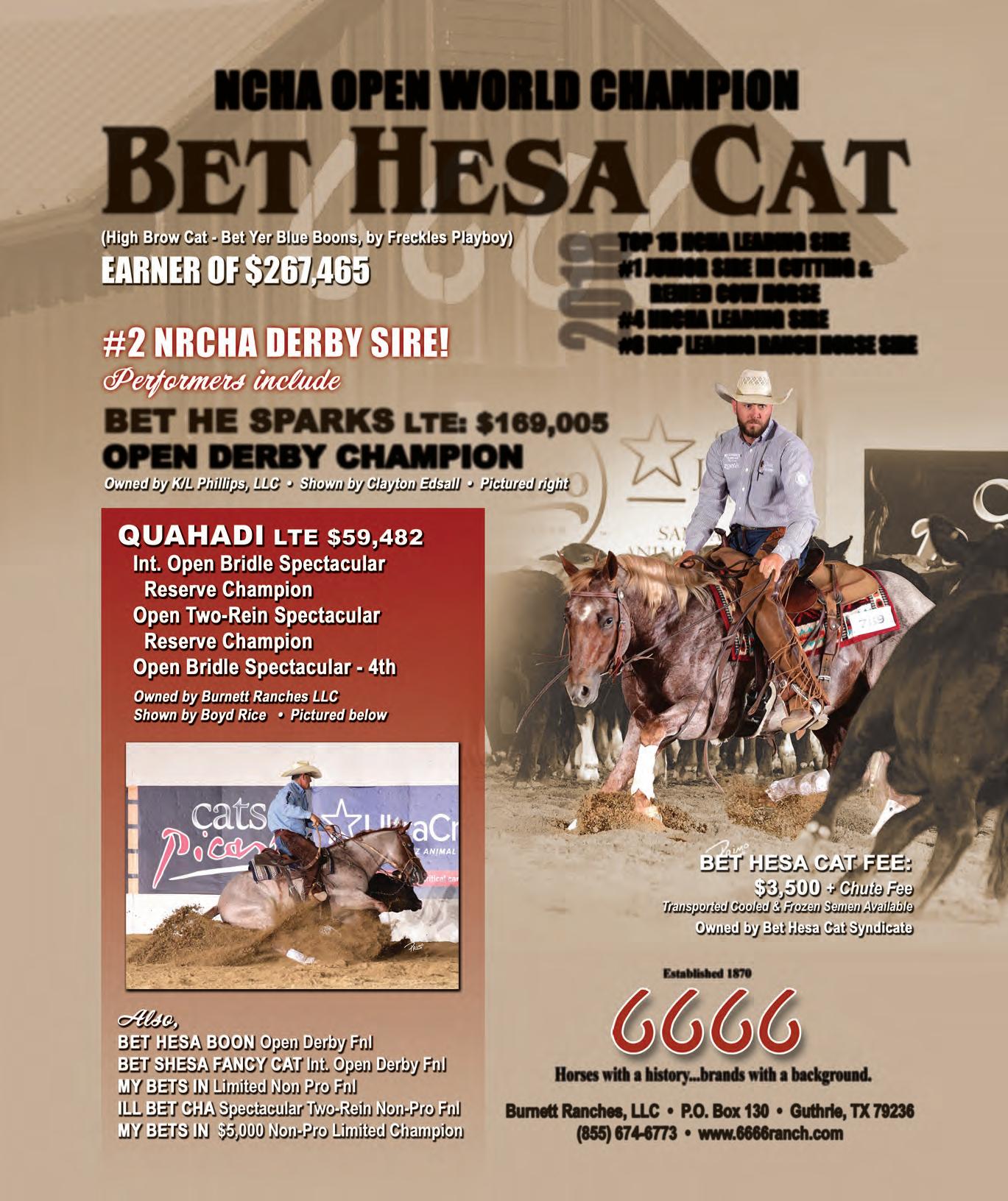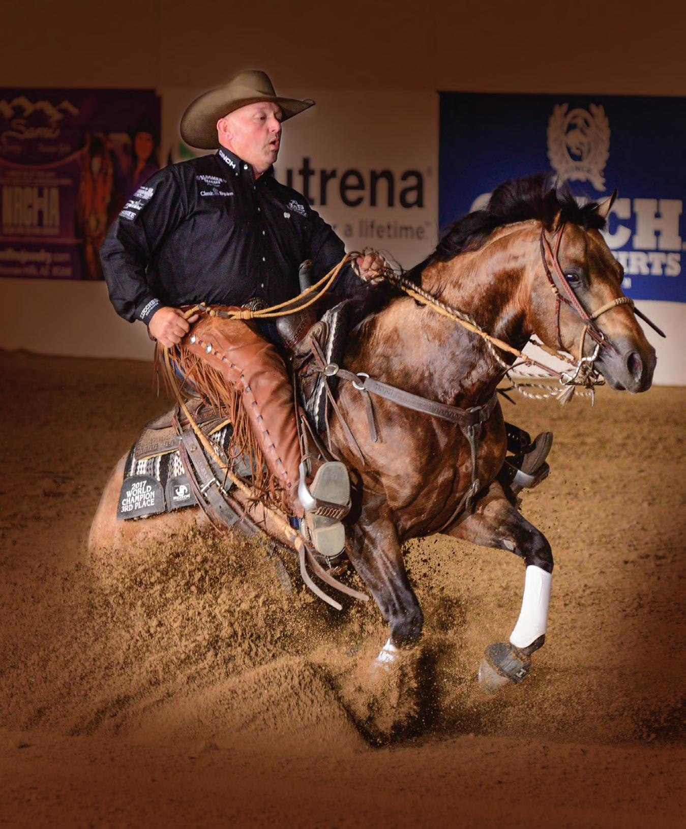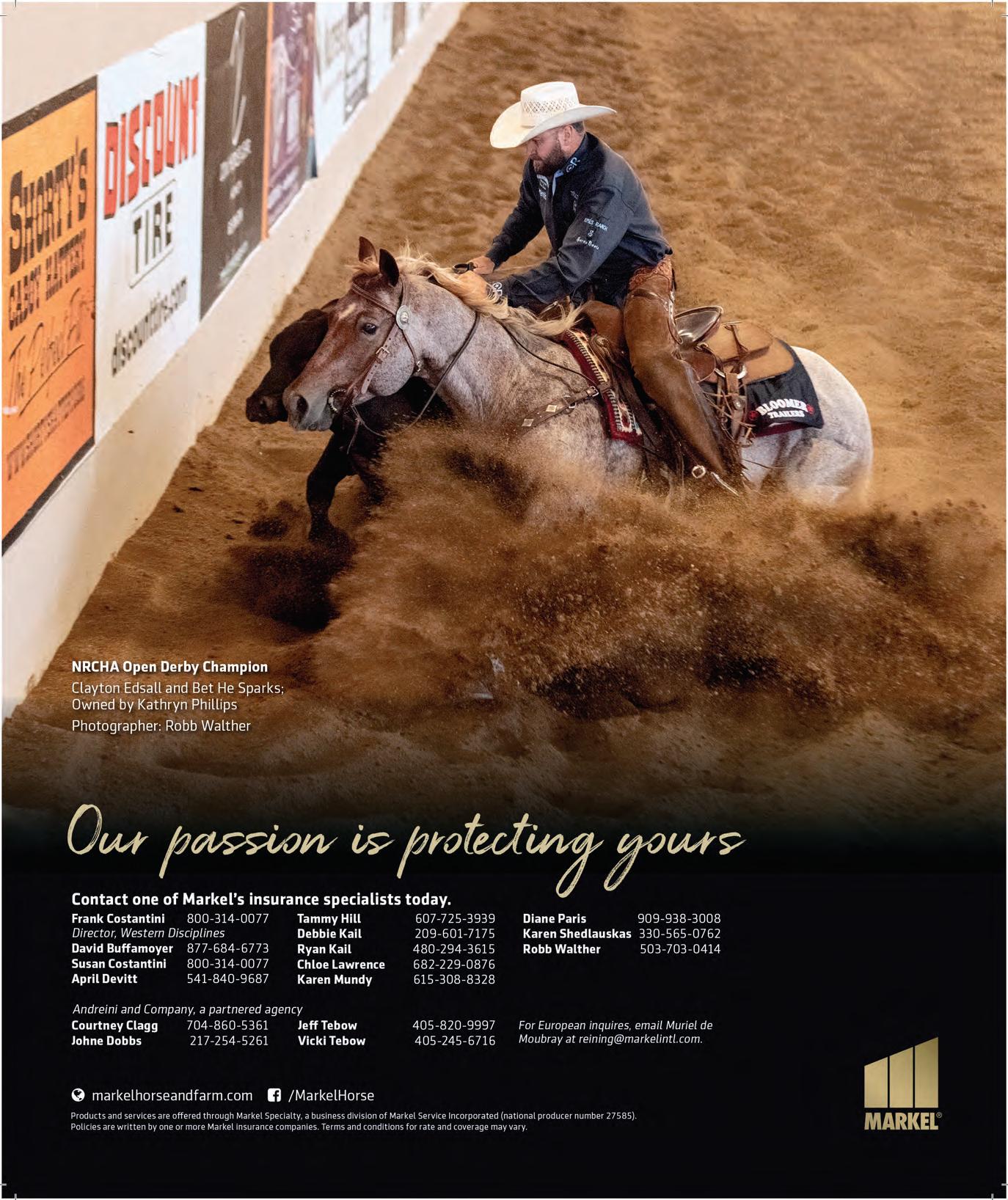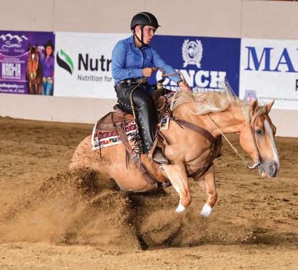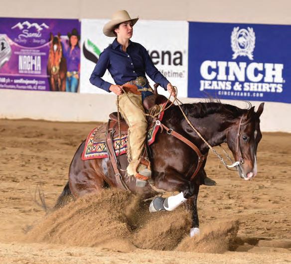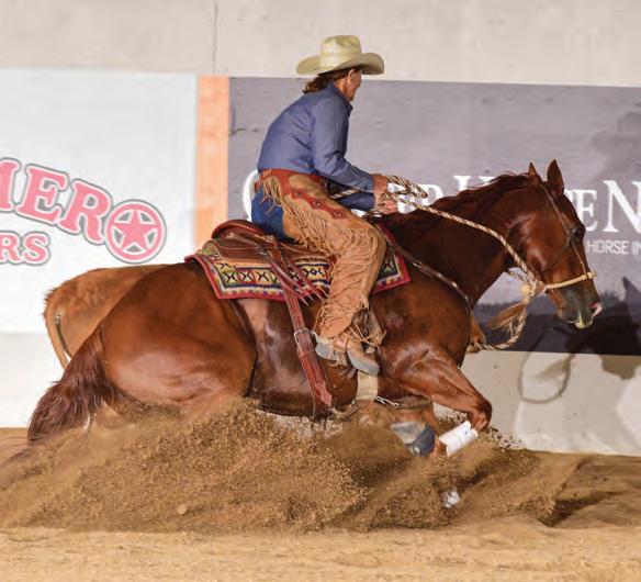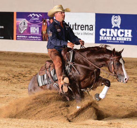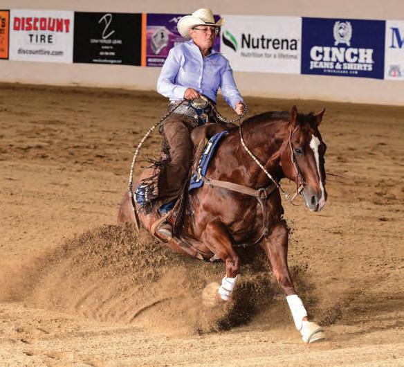 The 2019 NRCHA Derby Open Bridle Spectacular Champion ARC Sparkin Chics, ridden by Doug Williamson (page 72)