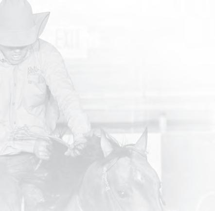 Reined Cow Horse News (ISSN 23803975) is published six times a year. All contents are copyright of the National Reined Cow Horse Association. All rights reserved. No part of this publication may be reproduced, stored in a retrieval system or transmitted in any form or by any means, electronic, mechanical, photocopying or otherwise, without prior written permission from the NRCHA. Opinions expressed in articles and advertising in Reined Cow Horse News do not necessarily reflect the positions or opinions of the NRCHA or its officers and members. Accuracy of material is the sole responsibility of the authors. Unsolicited materials are submitted at the sender’s risk and the NRCHA accepts no responsibility for them. Please address all submissions to: Reined Cow Horse News, 1017 North Hwy 377, Pilot Point, Texas, 76258. Subscription rate is $25 a year. Periodical postage paid at Pilot Point, Texas, 76258 and additional mailing offices. USPS number, 024-906. POSTMASTER: Send address changes to Reined Cow Horse News, 1017 North Hwy 377, Pilot Point, Texas, 76258.