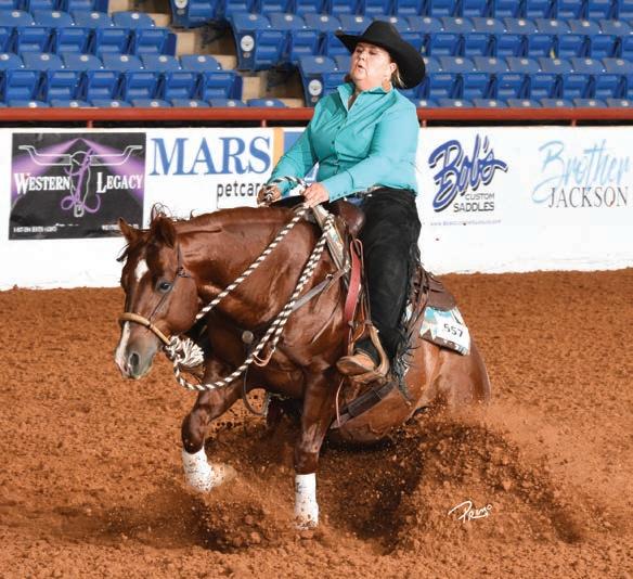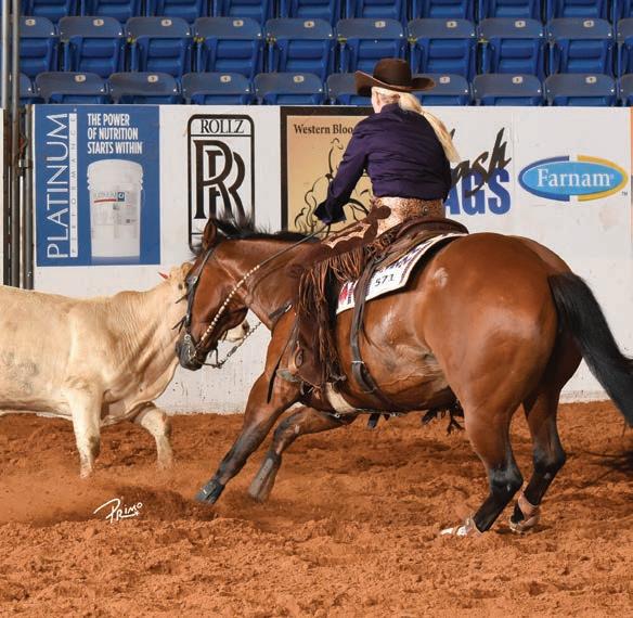 Riding Sheri Jamieson’s mare, Selvarey, Sarah Dawson earned the Snaffle Bit Futurity® Open Champion title (page 42).