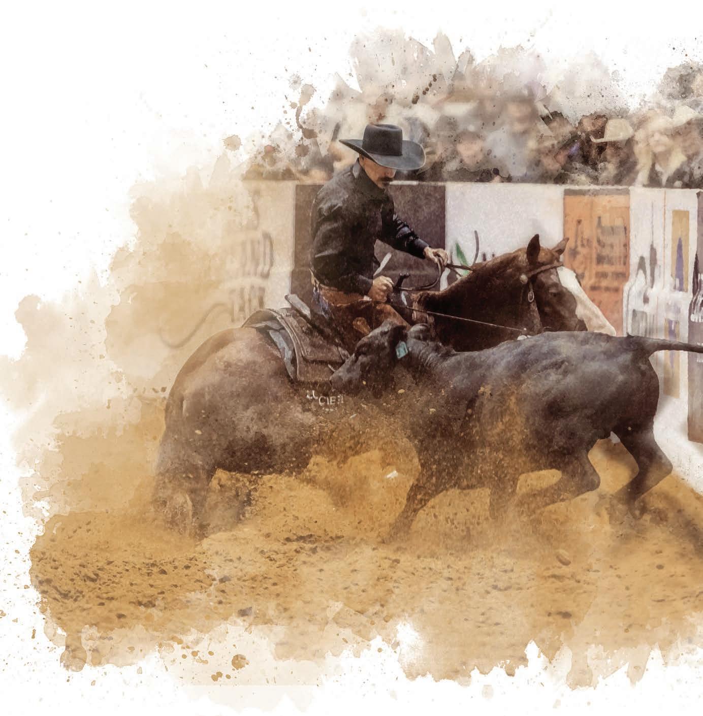 Reined Cow Horse News (ISSN 23803975) is published six times a year by Cowboy Publishing Group. Known office of publication: 2112 Montgomery Street, Fort Worth, TX 76107. All contents are copyright of the National Reined Cow Horse Association. All rights reserved. No part of this publication may be reproduced, stored in a retrieval system or transmitted in any form or by any means, electronic, mechanical, photocopying or otherwise, without prior written permission from the NRCHA. Opinions expressed in articles and advertising in Reined Cow Horse News do not necessarily reflect the positions or opinions of the NRCHA or its officers and members. Accuracy of material is the sole responsibility of the authors. Unsolicited materials are submitted at the sender’s risk and the NRCHA accepts no responsibility for them. Please address all submissions to: Reined Cow Horse News, 256 North Hwy 377, Pilot Point, Texas, 76258. Subscription rate is $25 a year. Periodical postage paid at Pilot Point, Texas, 76258 and additional mailing offices. USPS number, 024-906. Postmaster: Send address changes to Reined Cow Horse News, 256 North Hwy 377, Pilot Point, Texas, 76258.