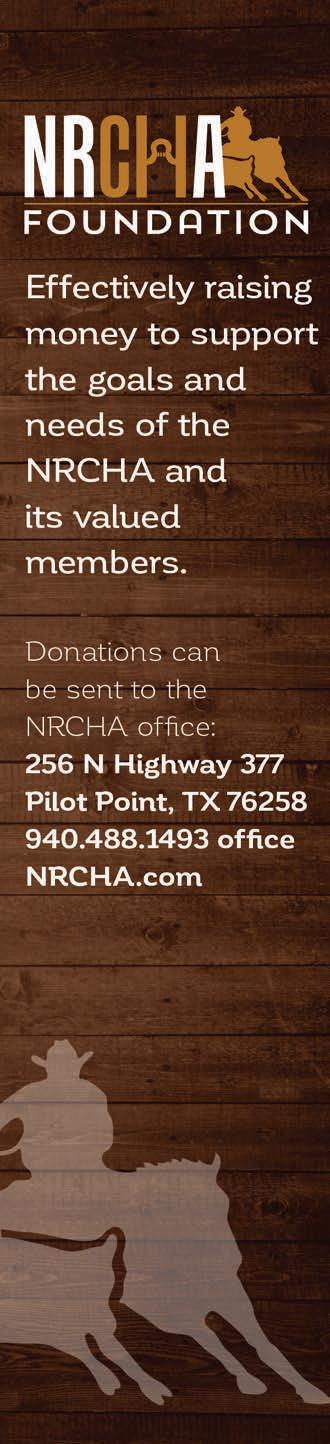 Reined Cow Horse News (ISSN 23803975) is published six times a year by Cowboy Publishing Group. Known office of publication: 2112 Montgomery Street, Fort Worth, TX 76107. All contents are copyright of the National Reined Cow Horse Association. All rights reserved. No part of this publication may be reproduced, stored in a retrieval system or transmitted in any form or by any means, electronic, mechanical, photocopying or otherwise, without prior written permission from the NRCHA. Opinions expressed in articles and advertising in Reined Cow Horse News do not necessarily reflect the positions or opinions of the NRCHA or its officers and members. Accuracy of material is the sole responsibility of the authors. Unsolicited materials are submitted at the sender’s risk and the NRCHA accepts no responsibility for them. Please address all submissions to: Reined Cow Horse News, 256 North Hwy 377, Pilot Point, Texas, 76258. Subscription rate is $25 a year. Periodical postage paid at Pilot Point, Texas, 76258 and additional mailing offices. USPS number, 024-906. Postmaster: Send address changes to Reined Cow Horse News, 256 North Hwy 377, Pilot Point, Texas, 76258.