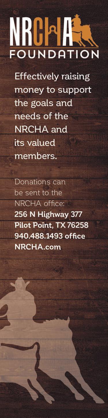 Reined Cow Horse News (ISSN 23803975) is published six times a year by Cowboy Publishing Group. Known office of publication: 2112 Montgomery Street, Fort Worth, TX 76107. All contents are copyright of the National Reined Cow Horse Association. All rights reserved. No part of this publication may be reproduced, stored in a retrieval system or transmitted in any form or by any means, electronic, mechanical, photocopying or otherwise, without prior written permission from the NRCHA. Opinions expressed in articles and advertising in Reined Cow Horse News do not necessarily reflect the positions or opinions of the NRCHA or its officers and members. Accuracy of material is the sole responsibility of the authors. Unsolicited materials are submitted at the sender’s risk and the NRCHA accepts no responsibility for them. Please address all submissions to: Reined Cow Horse News, 256 North Hwy 377, Pilot Point, Texas, 76258. Subscription rate is $25 a year. Periodical postage paid at Pilot Point, Texas, 76258 and additional mailing offices. USPS number, 024-906. Postmaster: Send address changes to Reined Cow Horse News, 256 North Hwy 377, Pilot Point, Texas, 76258.