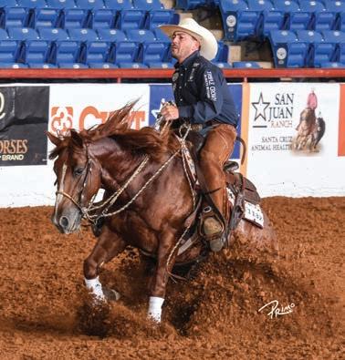 Zak 34, owned by Melissa Fischer, carried NRCHA Million Dollar Rider Justin Wright to his first NRCHA Snaffle Bit Futurity® championship. [Page 74]