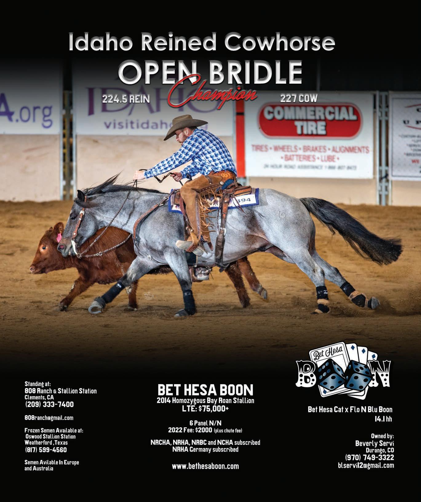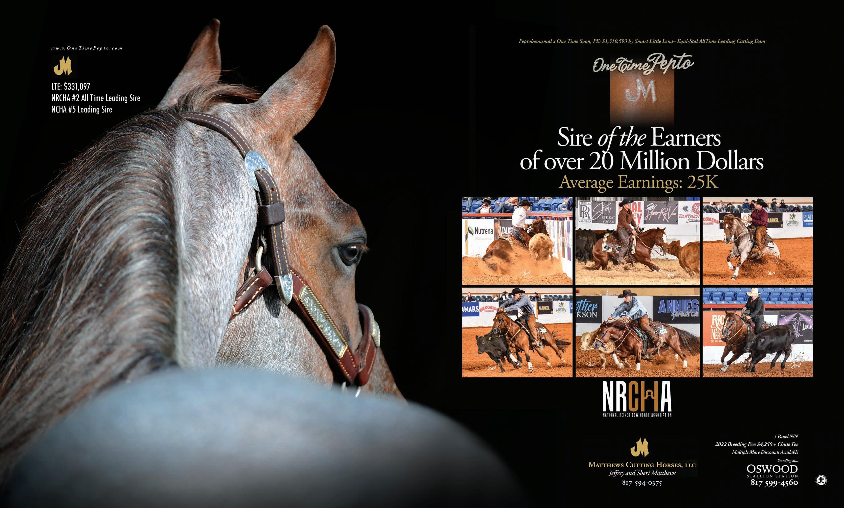 Reined Cow Horse News (ISSN 23803975) is published six times a year by Cowboy Publishing Group. Known office of publication: 2112 Montgomery Street, Fort Worth, TX 76107. All contents are copyright of the National Reined Cow Horse Association. All rights reserved. No part of this publication may be reproduced, stored in a retrieval system or transmitted in any form or by any means, electronic, mechanical, photocopying or otherwise, without prior written permission from the NRCHA. Opinions expressed in articles and advertising in Reined Cow Horse News do not necessarily reflect the positions or opinions of the NRCHA or its officers and members. Accuracy of material is the sole responsibility of the authors. Unsolicited materials are submitted at the sender’s risk and the NRCHA accepts no responsibility for them. Please address all submissions to: Reined Cow Horse News, 256 North Hwy 377, Pilot Point, Texas, 76258. Subscription rate is $25 a year. Periodical postage paid at Pilot Point, Texas, 76258 and additional mailing offices. USPS number, 024-906. Postmaster: Send address changes to Reined Cow Horse News, 256 North Hwy 377, Pilot Point, Texas, 76258.