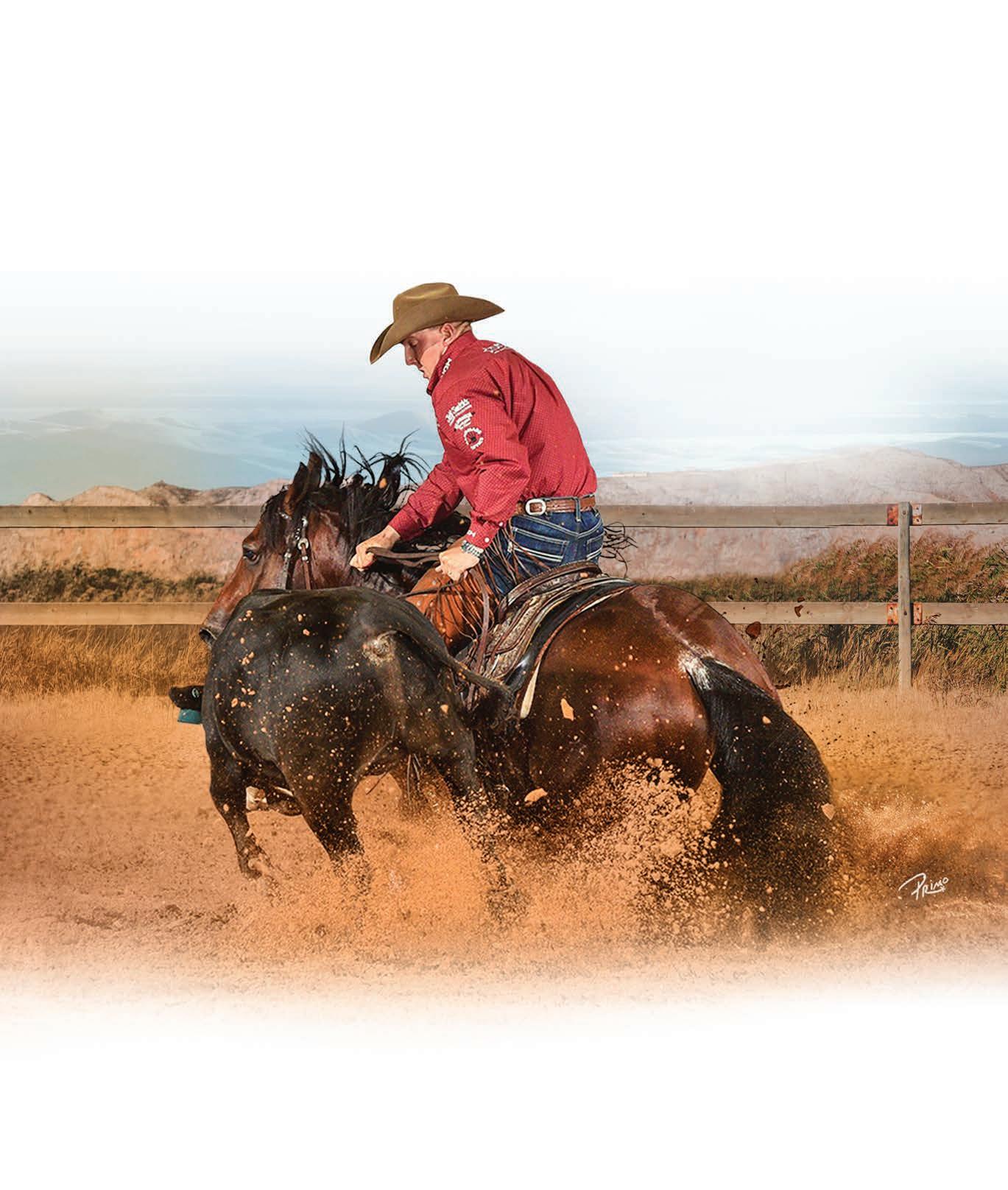 Reined Cow Horse News (ISSN 23803975) is published six times a year by Cowboy Publishing Group. Known office of publication: 2112 Montgomery Street, Fort Worth, TX 76107. All contents are copyright of the National Reined Cow Horse Association. All rights reserved. No part of this publication may be reproduced, stored in a retrieval system or transmitted in any form or by any means, electronic, mechanical, photocopying or otherwise, without prior written permission from the NRCHA. Opinions expressed in articles and advertising in Reined Cow Horse News do not necessarily reflect the positions or opinions of the NRCHA or its officers and members. Accuracy of material is the sole responsibility of the authors. Unsolicited materials are submitted at the sender’s risk and the NRCHA accepts no responsibility for them. Please address all submissions to: Reined Cow Horse News, 256 North Hwy 377, Pilot Point, Texas, 76258. Subscription rate is $25 a year. Periodical postage paid at Pilot Point, Texas, 76258 and additional mailing offices. USPS number, 024-906. Postmaster: Send address changes to Reined Cow Horse News, 256 North Hwy 377, Pilot Point, Texas, 76258.