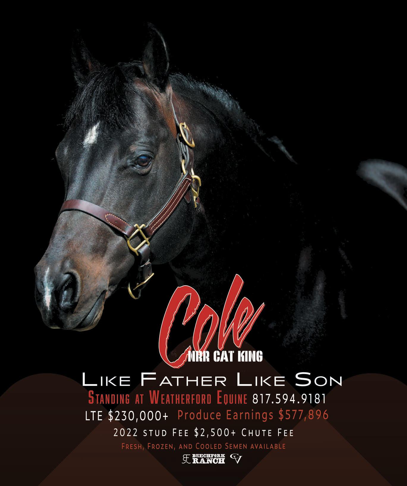 Reined Cow Horse News (ISSN 23803975) is published six times a year by Cowboy Publishing Group. Known office of publication: 2112 Montgomery Street, Fort Worth, TX 76107. All contents are copyright of the National Reined Cow Horse Association. All rights reserved. No part of this publication may be reproduced, stored in a retrieval system or transmitted in any form or by any means, electronic, mechanical, photocopying or otherwise, without prior written permission from the NRCHA. Opinions expressed in articles and advertising in Reined Cow Horse News do not necessarily reflect the positions or opinions of the NRCHA or its officers and members. Accuracy of material is the sole responsibility of the authors. Unsolicited materials are submitted at the sender’s risk and the NRCHA accepts no responsibility for them. Please address all submissions to: Reined Cow Horse News, 256 North Hwy 377, Pilot Point, Texas, 76258. Subscription rate is $25 a year. Periodical postage paid at Pilot Point, Texas, 76258 and additional mailing offices. USPS number, 024-906. Postmaster: Send address changes to Reined Cow Horse News, 256 North Hwy 377, Pilot Point, Texas, 76258.