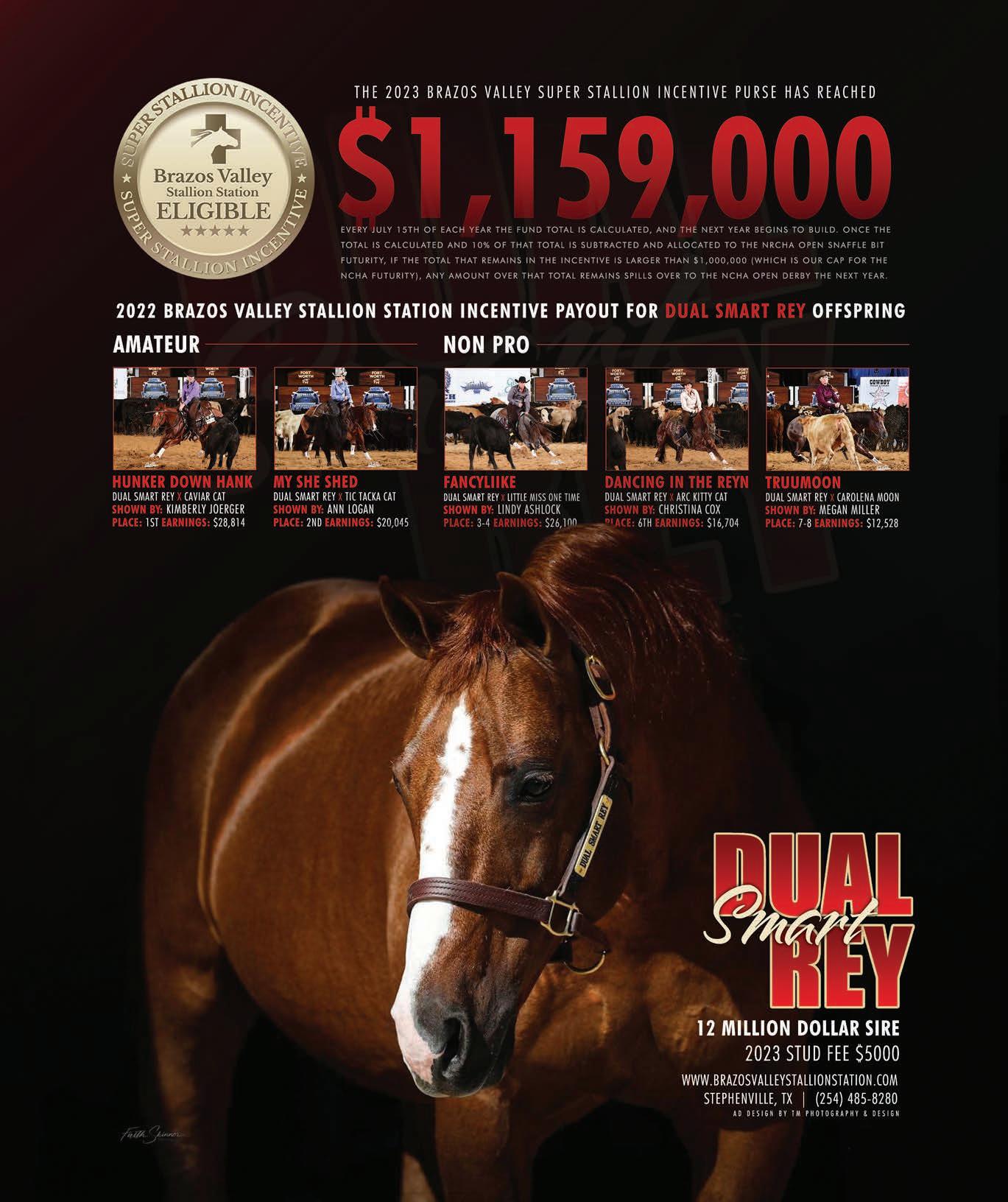 SMOOTH ANNA REY 2022 bay mare (Smooth As A Cat x Dual Reyann, by Dual Rey). Dam LTE $5,621. Dam PE $9,043.