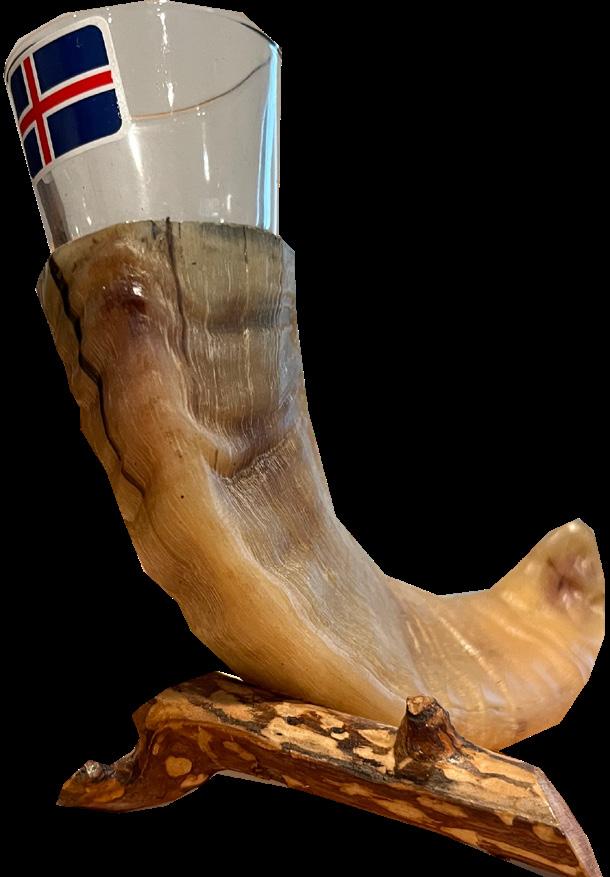 Then, he got his second shot glass from the Winchester Mystery House, and another from Iceland with an animal horn base.