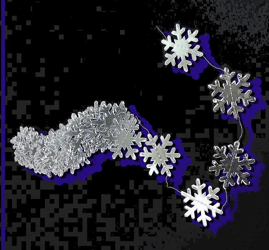 feet of silver snowflake garlands set up for the annual Winter Formal dance.
