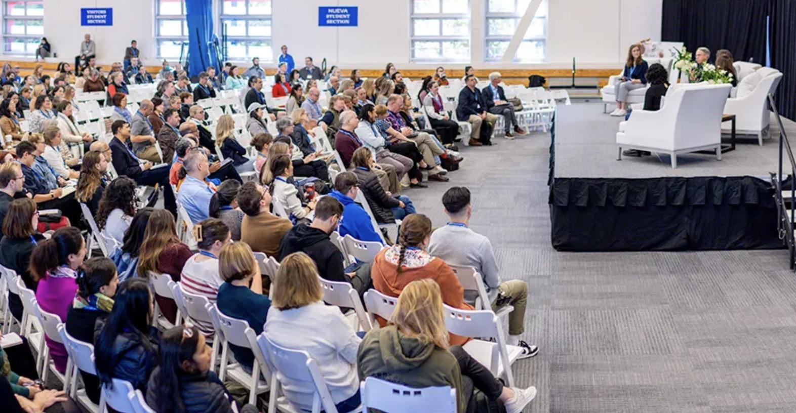 In his annual State of Nueva presentation, Head of School Lee Fertig captured both quantitative and qualitative data about various facets of the school. While presenting a slide with the school’s incredible matriculation trends in recent years, he also shared his reservations with parents surrounding the school’s increasingly elite college acceptances.