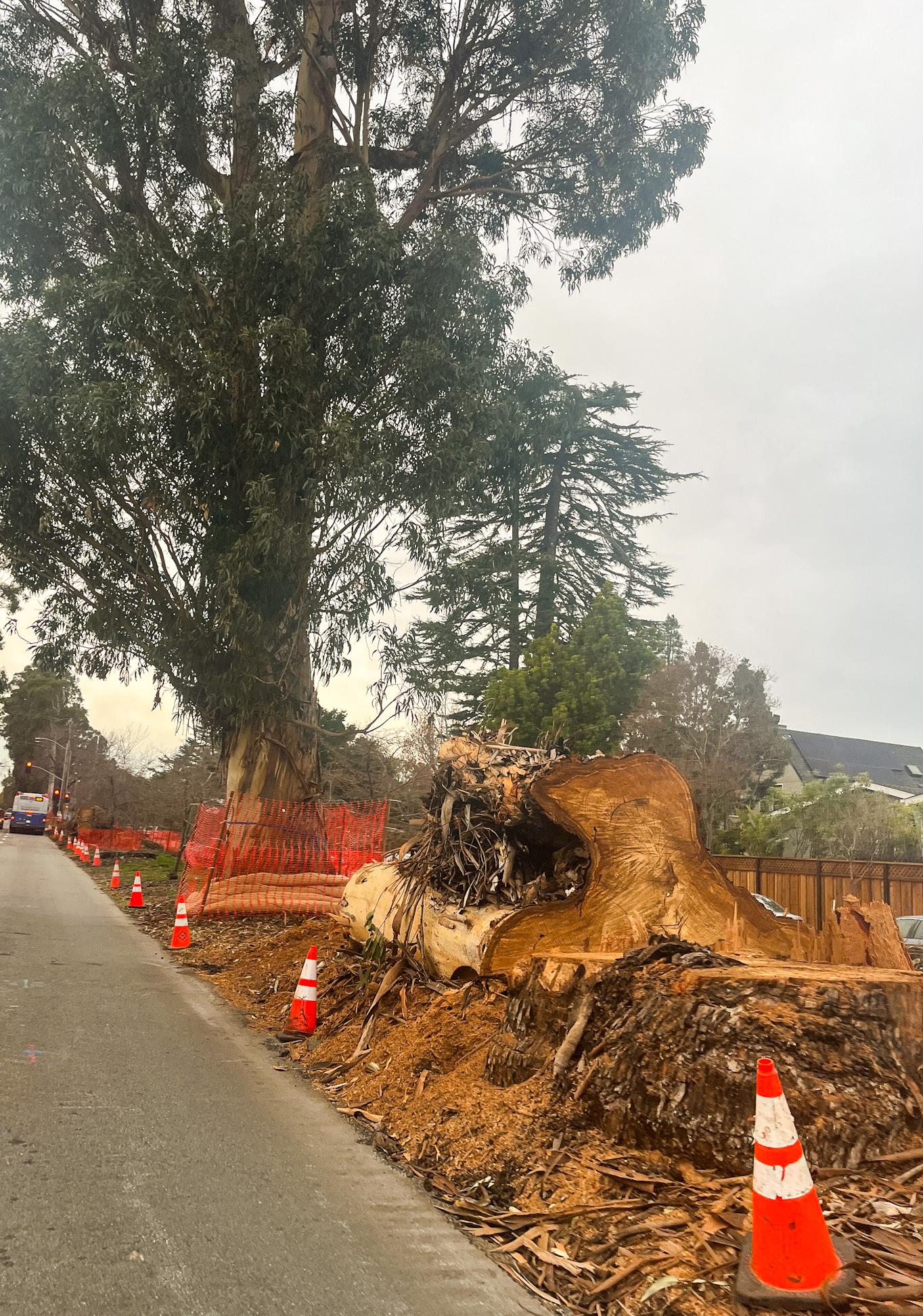 Beginning on Jan. 8, sections of El Camino Real in Burlingame, Calif., were closed to passenger vehicles during the day; the closure ended on Jan. 16. During this time, crews removed multiple eucalyptus trees between Rosedale Ave. and Grove Ave.