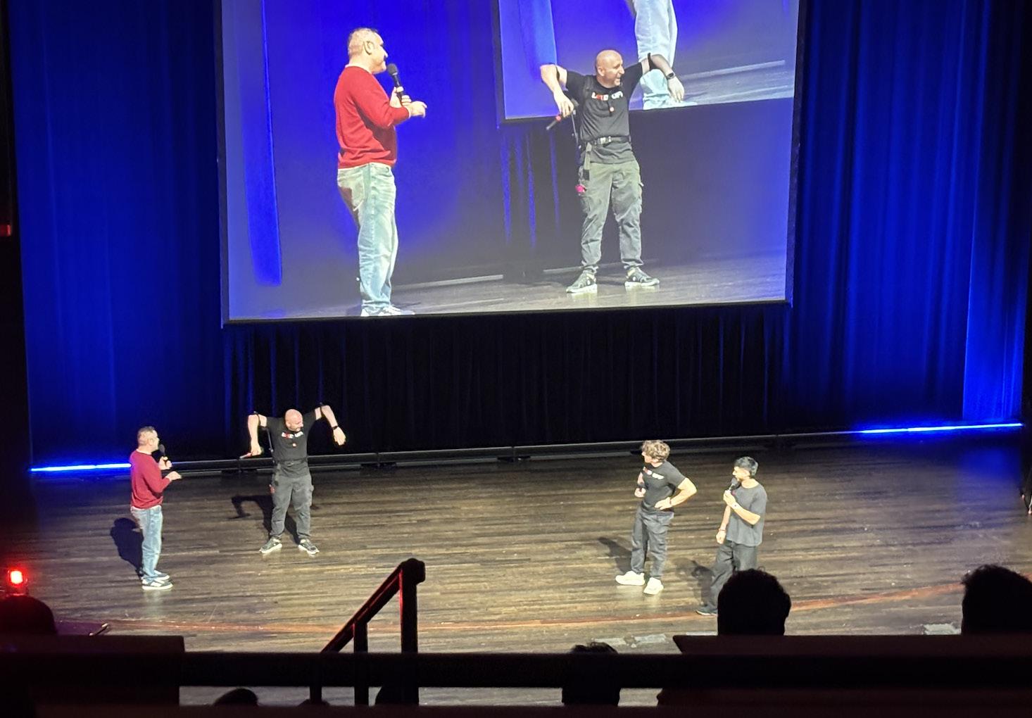 Then, as in past years’ State of Nuevas, Fertig invited four community members—a parent, student, alum, and teacher—onstage to reflect on the updates. After responding positively to several aspects of Fertig’s presentation, Rowan B. ’26 shared that, as an admissions ambassador, he’s received an increasing quantity of college-related questions from pro-