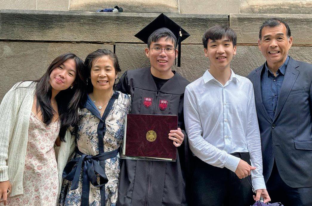 Tyler Poon ’20 celebrating his UChicago graduation with his parents, Buffy and Alex, and siblings Kelly ’24 and Ryan ’22.