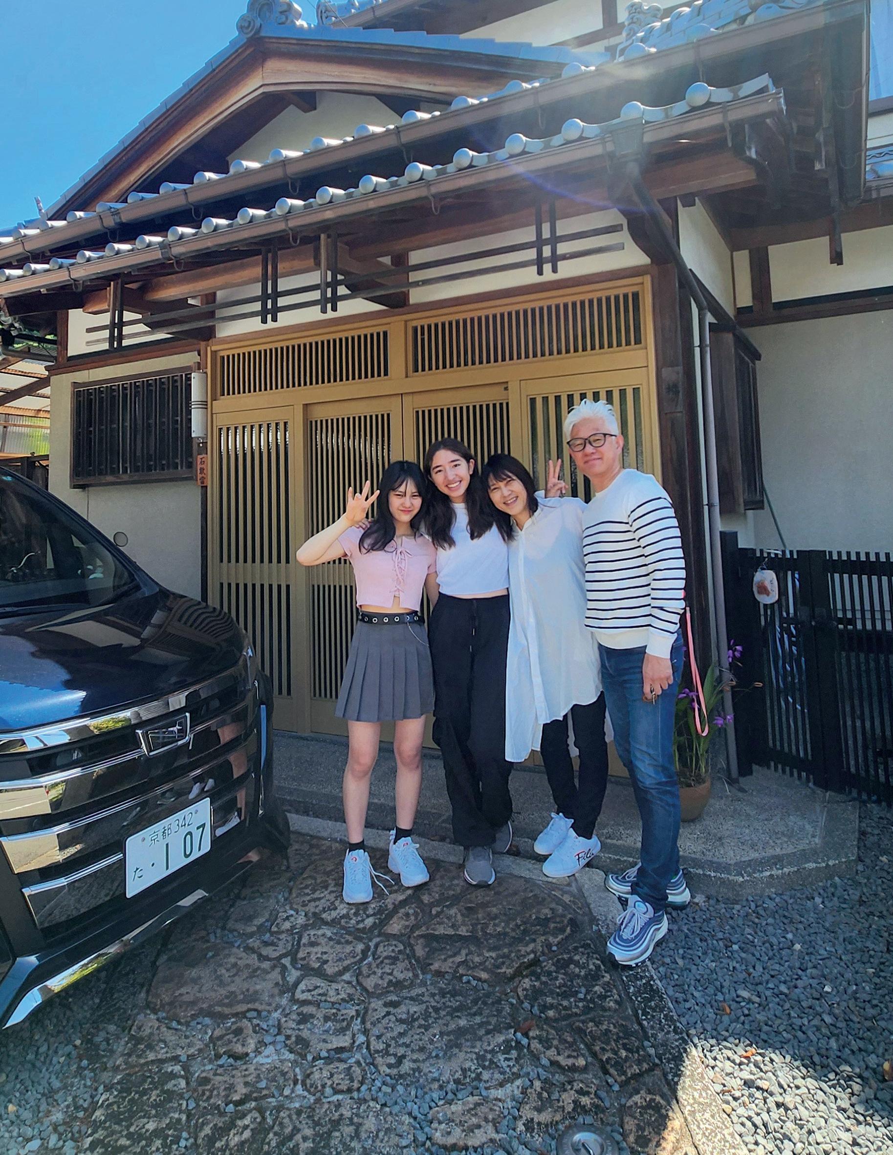 Evelyn K. ’28 (second from left) with her host family outside their home in Japan. Week-long homestays were reintroduced this year to the eighth grade’s language-based international trips.