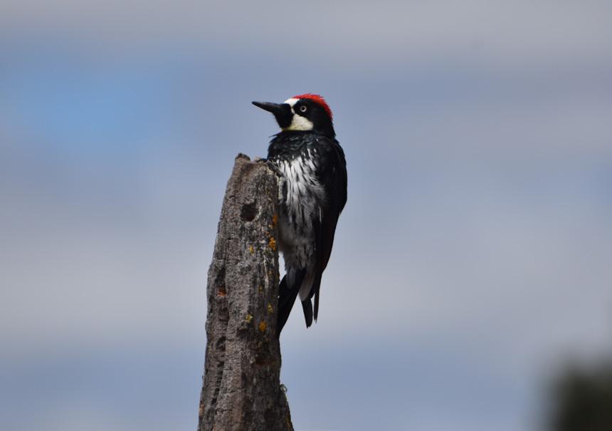 Songbirds such as meadowlarks and western kingbirds inhabit the park. Various woodpecker species — such as the downy and most common acorn woodpeckers — can be heard hammering away at trees.