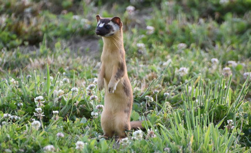 Strikingly blue western bluebirds can be seen here, as well as one notable non-bird — the long-tailed weasel. It’s quite entertaining to watch the weasels run about with their cute faces and playful demeanors.