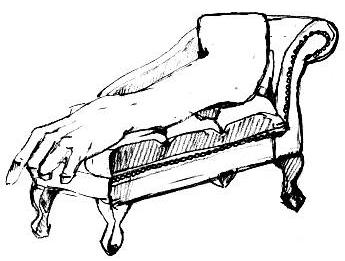 The Kertész is more lively. Hungarian dancer Magda Förster lies playfully upon a couch in a contorted position, with an image of an armless female figure framed on the wall to her left, and an armless female bust to her right.