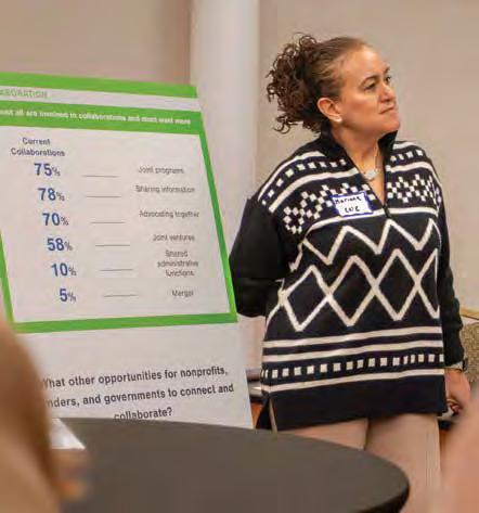 Mariane Asad Doyle, Executive Director of the CNE, leading a discussion on collaboration with nonprofits in February 2025.