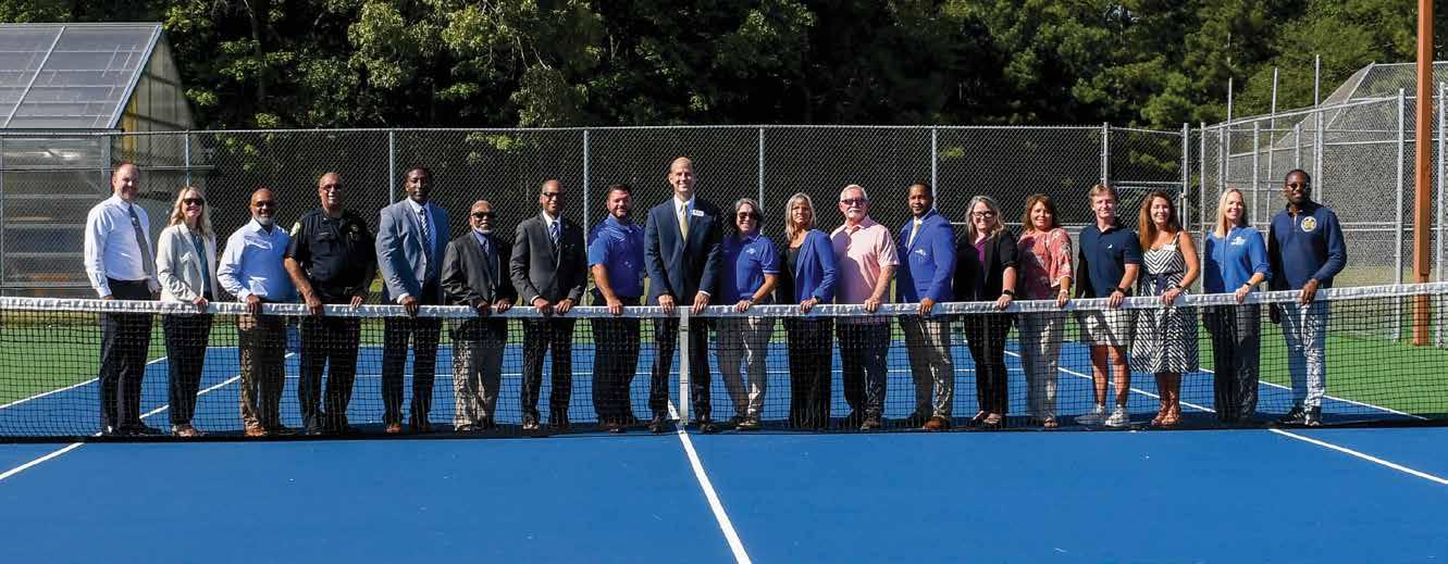 Pictured: Obici Healthcare Foundation, school, and community leaders at the ribbon cutting ceremony for Windsor High School’s new tennis court, funded by a $50,000 Healthy Spaces grant awarded to Isle of Wight County Schools.