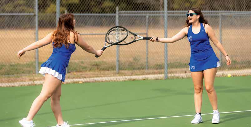 Pictured: Two Windsor High School Girls’ Tennis players celebrate on the Windsor High School Tennis Court. Photo courtesy of Isle of Wight County Schools.