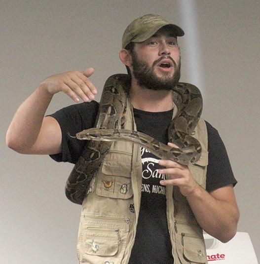 Presenter Bryce Alpers, known as “Bayou Bryce” at his several public stops, showed off several creepy crawlers, including a snapping turtle, a snake, a bearded dragon, and of course an alligator, all while delivering important facts about the creatures and the work done by the sanctuary, which takes care of reptiles that have been surrendered by humans or that it finds in need of help.