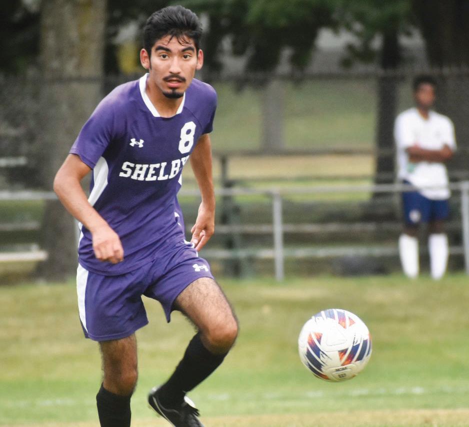 Shelby’s Alan Arreola controls a ball in the midfield as he looks to make a pass. • Brendan Samuels/ ECHO
