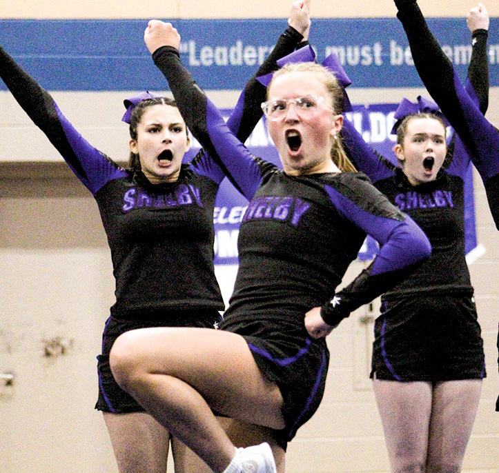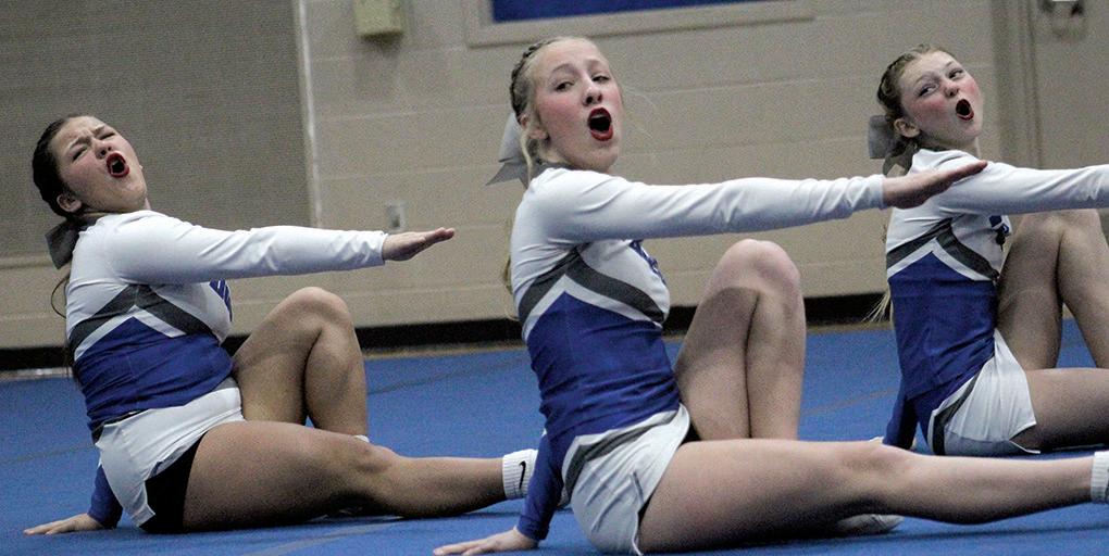 cheer team opens its round one routine during Wednesday's Montague Jamboree. The Vikings used an unorthodox formation to open the routine, with athletes standing very close together. Whitehall finished in 4th place.