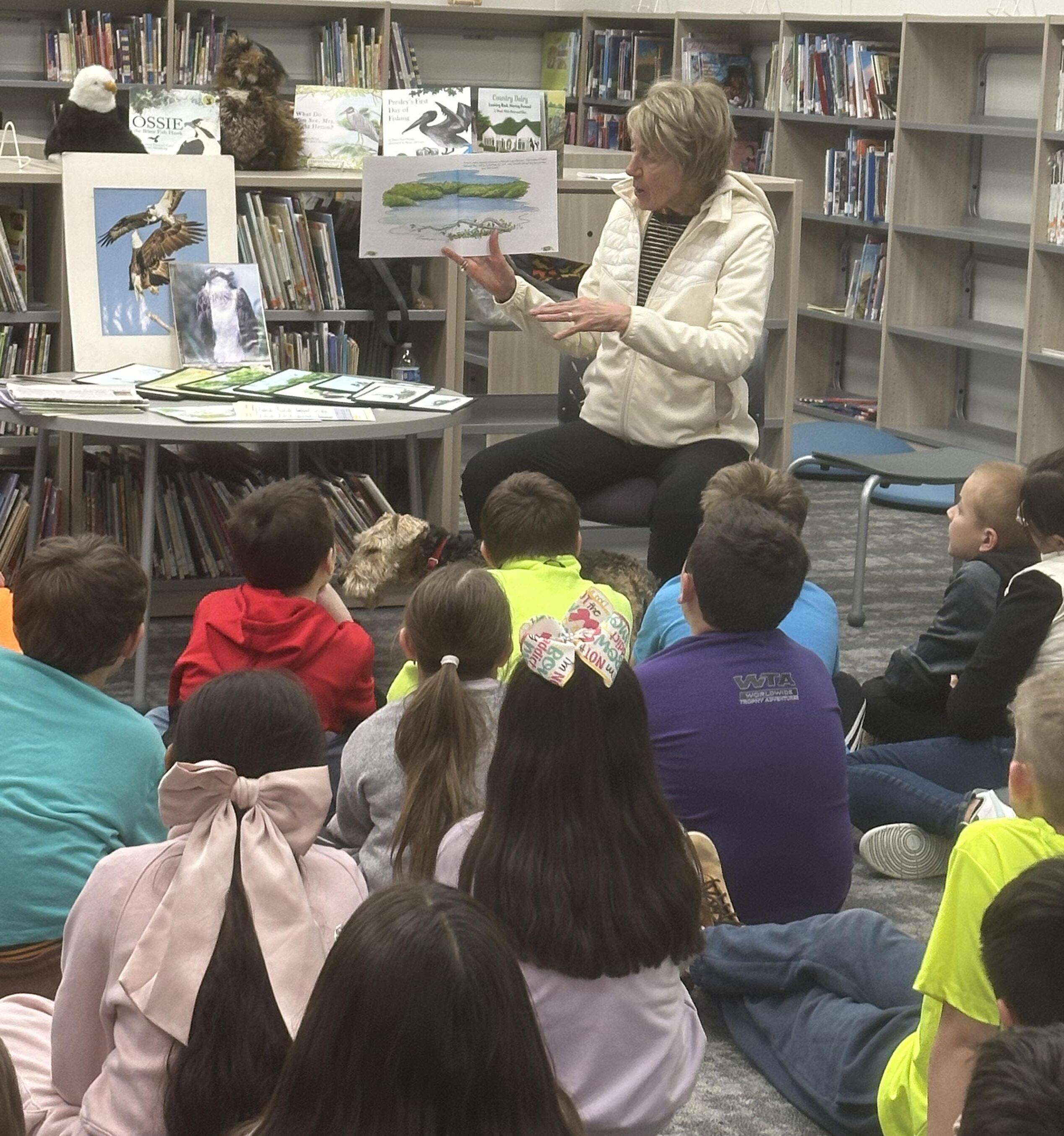 On March 18 and 19, students at Shelby Elementary School were treated to a visit by author Janet (Van Gunst) Hasselbring to commemorate Reading Month. Janet shared books from her Tales from Pelican Cove series, which portray the wild/shorebirds of Florida and beyond, and her Country Dairy book, “Looking Back, Moving Forward,” describing life on her family farm in the 1930s when her parents, Henry and Ellen Van Gunst, lived and worked the land.