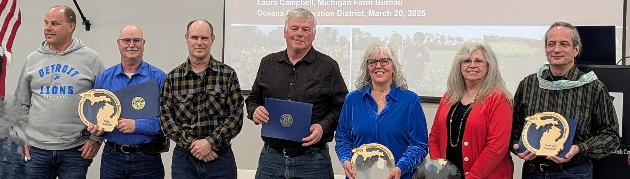 “Conservationists of the Year” for 2024 was earned by Rabe Orchards. The Benona Township farming operation is where three generations, to date, have practiced conservation in their farming practices. Three Rabe brothers—David, Chris and Raymond—took the stage to receive their award for observing environmental regulations affecting farming operations in addition to helping preserve Oceana’s many natural resources.