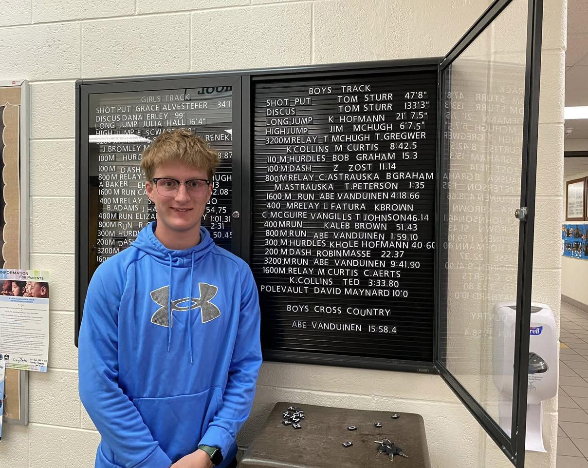 Cami Kraai took home the Viking girls' lone win, finishing the 800 in 2:24.0. Teammate Adalyn Britton was third (2:30.4). Evelyn Darke placed third in discus (79-7) and in shot put (32-6), and Lexi Poulin was third in high jump (4-8). The 3,200 relay team of Britton, Kraai, Ella Nicholson and Kassidy Parmley took second (11:42.4).