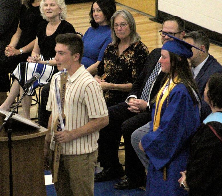 Senior class president Greta Auch also spoke and had the traditional honor of passing the color staff - a wooden object emblazoned with the Montague Wildcat logo - to junior class president Fletcher Thommen, declaring that the Class of 2026 was the new senior group. Prior to school board president Brent Raeth conferring the honor of graduation on the Class of 2025, superintendent Jeff Johnson closed out the speakers' portion of the evening by emphasizing finding what you care about, pursuing it, and learning from any failures that come along the way.