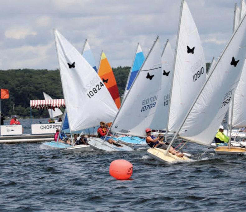 Several butterfly boats sail on the water near the White Lake Yacht Club. The White Lake Sailing School is hoping in the long term to add new butterfly boats to its fleet.