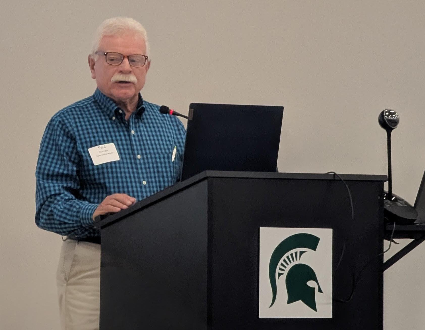 The highlight of the breakfast was a slideshow of the formation of Peterson Farms, Inc. (PFI) and its path to becoming Oceana County’s largest employer. Earl Peterson and his wife, Linda, were present to tell their family history that spans four generations of fruit growers in West Michigan. Their parents, LeRoy Don and Marjorie Peterson, and Theresa Weaver, along with Vern and Jean Ann Lambrix were always in the background support-