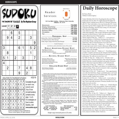www.sudoku.org.uk © 2016 The Mepham Group. Distributed by Tribune Content Agency. All rights reserved.