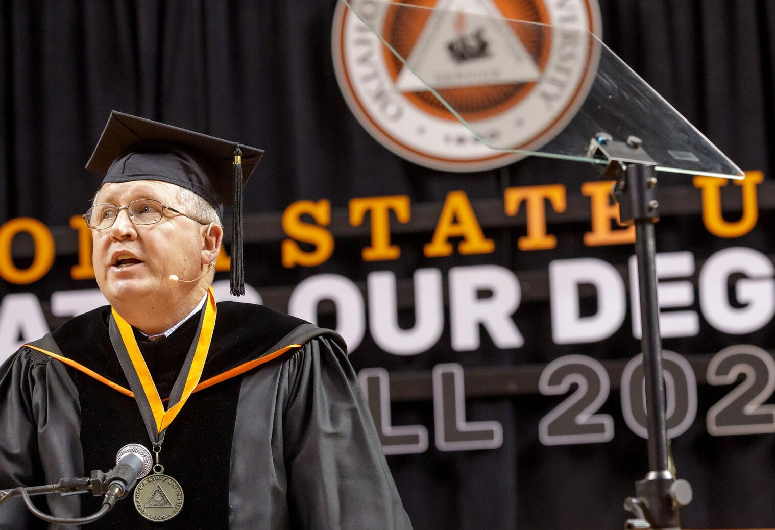 OSU President Kayse Shrum led the 145th commencement and was joined by Rep. Lucas; Dr. Ki Cole, OSU faculty chair; Jarold Callahan, OSU A&M Board of Regents chair; and Riley Pritzlaff, Student Government Association president.