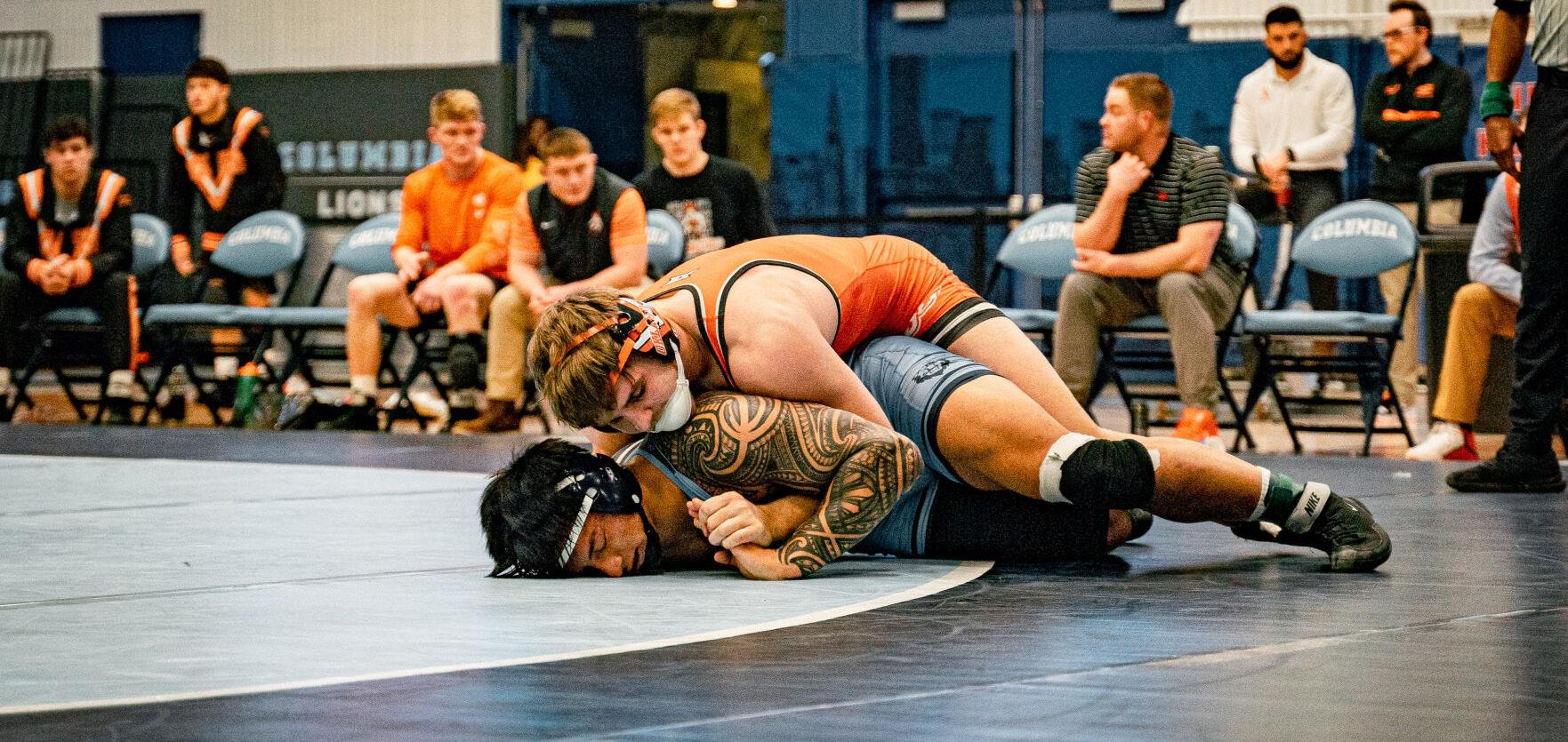 Luke Surber, OSU’s 197-pounder, defeated Columbia’s Javen Jovero with a 21-6 tech fall on Sunday afternoon. Surber’s win clinched OSU’s 23-12 win.