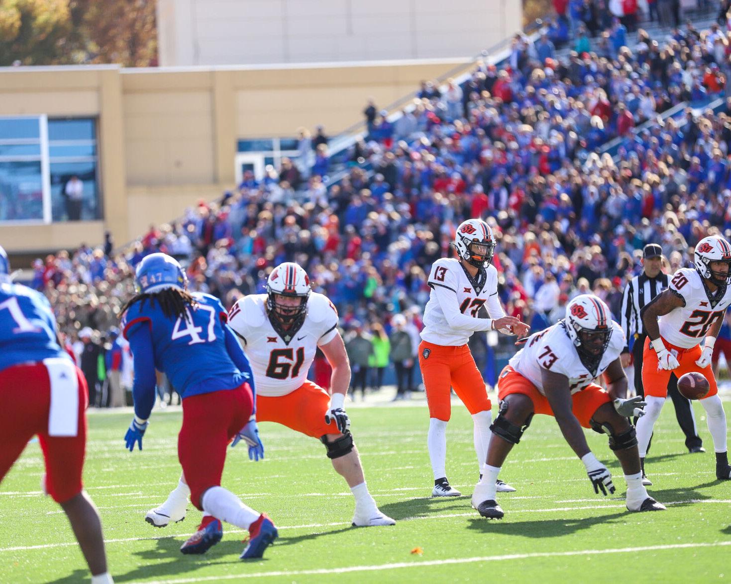 ford heading into their matchup against Kansas, but nevertheless, the Jayhawks had a perfect storm of all three in their 37-16 victory. With ru mors about the status of Cow boy quarterback Spencer Sand ers circulating throughout the week, any hope of a bounce-back win rested on his shoulders, per usual.