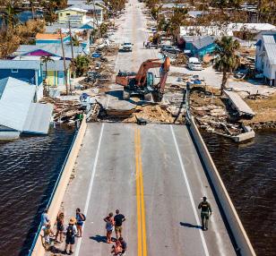 Courtesy of Tribune Hurricane Ian severely damaged the road leading to the Matlacha bridge to Pine Island, preventing thousands of resi dents from Pine Island in Florida from returning to their homes after evacuation.
