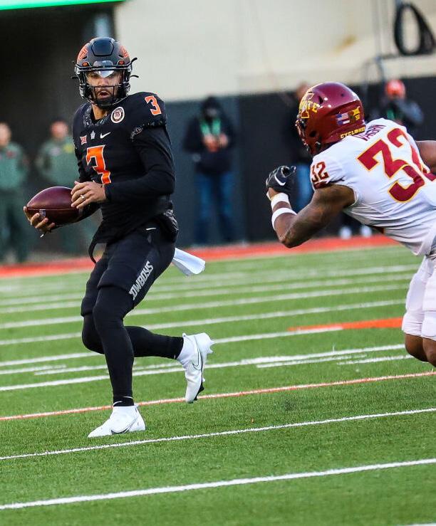 OSU quarterback Spencer Sanders entered late in the third quarter and led the Cowboys to a 20-14 win over Iowa State.