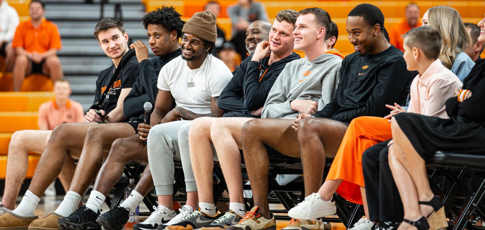 Most of OSU’s roster showed up for coach Steve Lutz’s introductory conference on Thursday.
