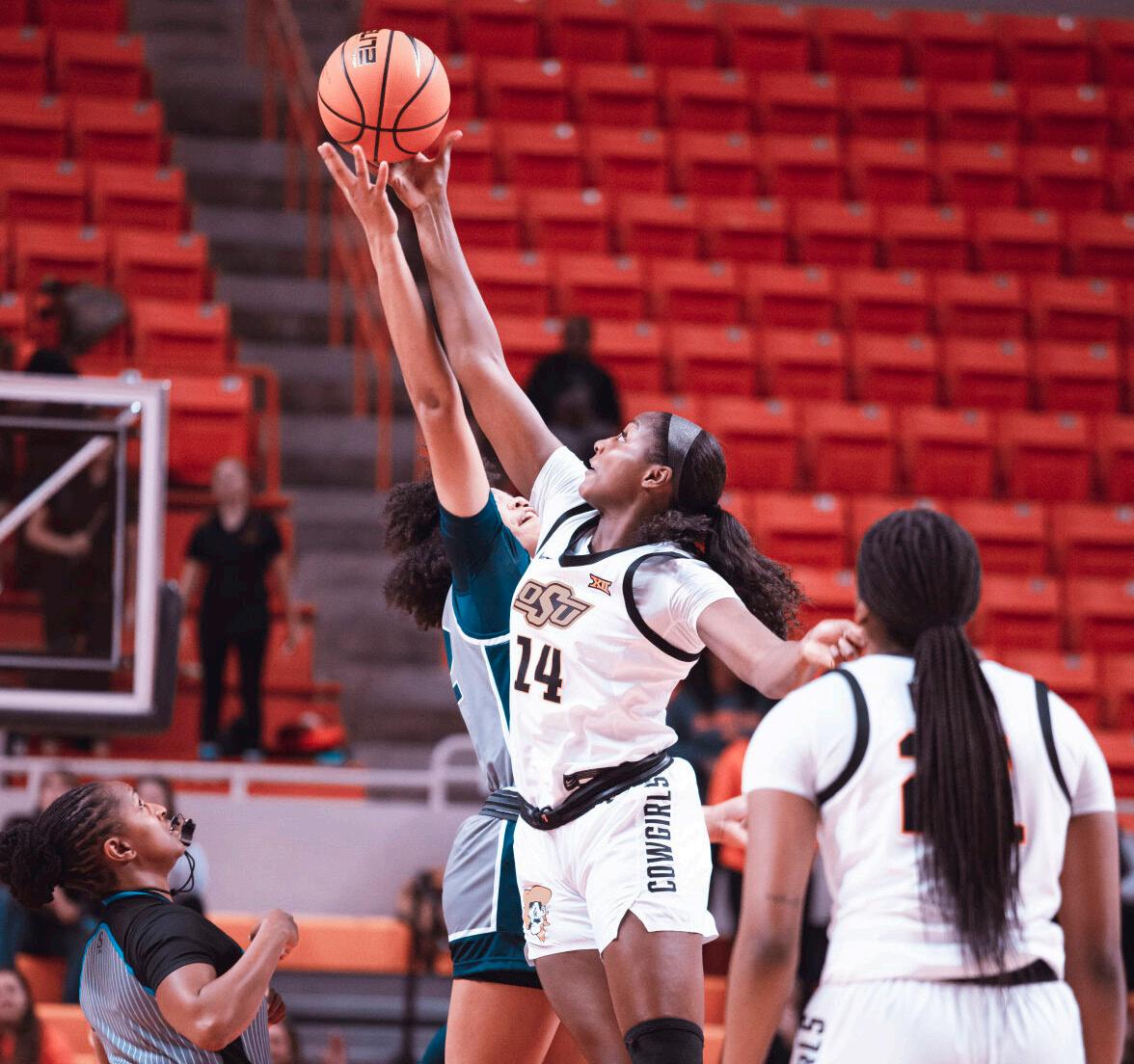 While the Cowgirls changed up their offensive strategy at the half, their dominance on the glass never wavered. OSU outrebounded UNT 48-28, with junior forward Taylen Collins setting a new career-high in rebounds with 23.