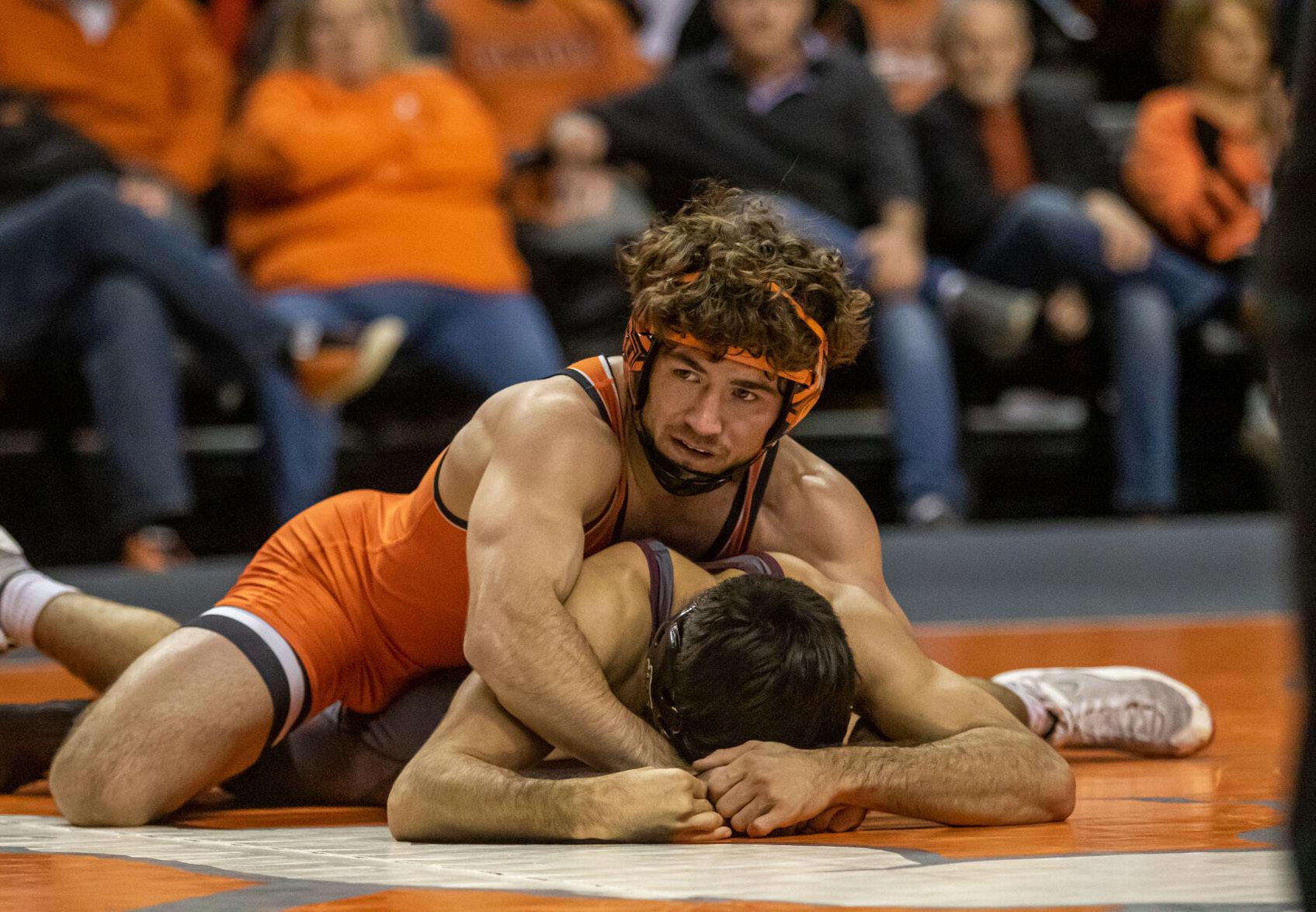 No. 21 Carter Young, OSU’s 141-pounder, defeated No. 3 Jake Bergeland of Minnesota in the Cowboys’ 18-12 loss to the Golden Gophers on Sunday afternoon in Gallagher-Iba Arena.