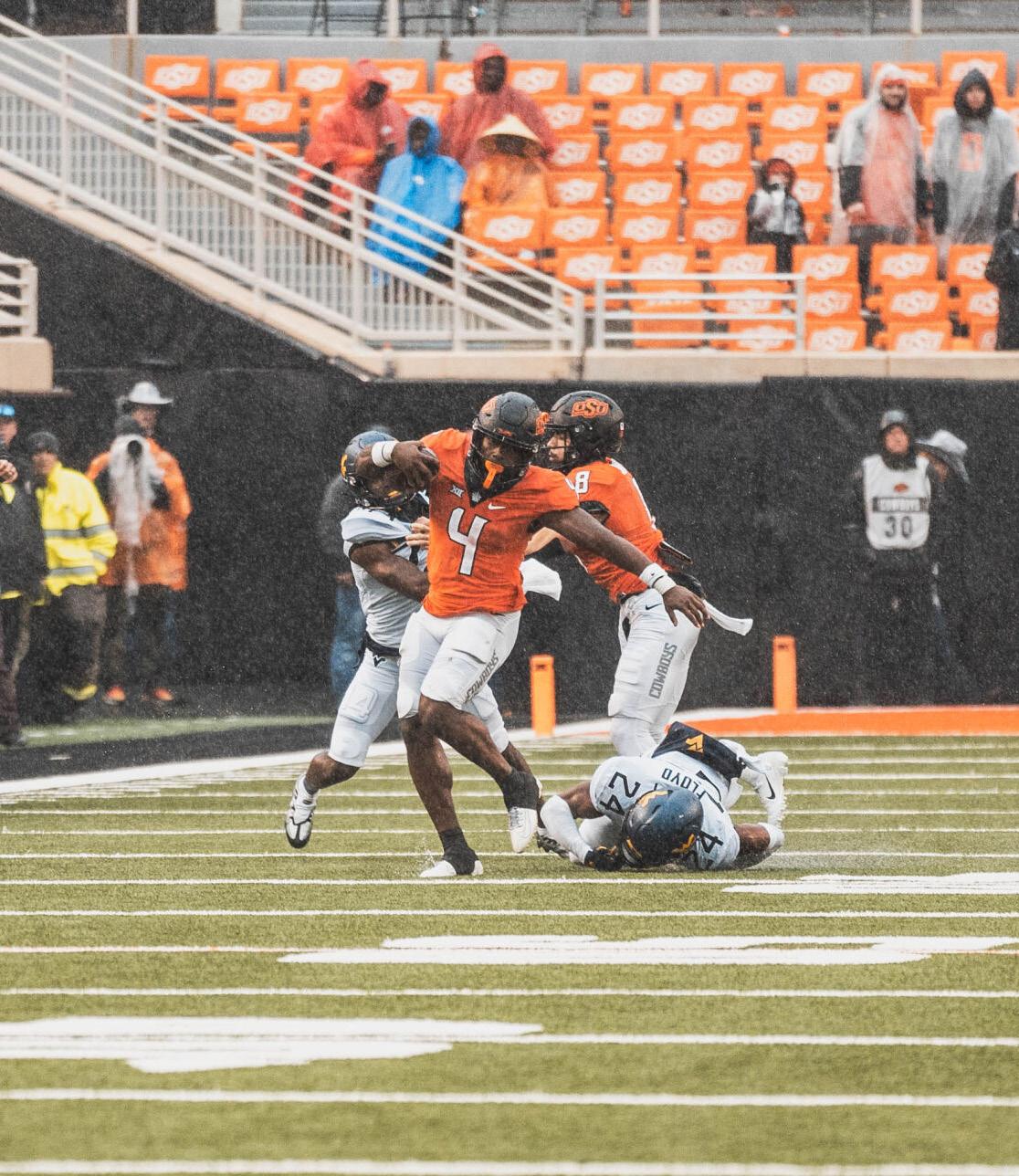 Garret Rangel gets the nod for injured Spencer Sanders Cowboys’ star quarterback Spencer Sand ers missed his second game of the season, which prompted Ran gel to make his second-career start. The true freshman com pleted 18 of his 42 pass attempts for 178 yards. For the first time in a while, OSU’s passing game was its Achilles heel. Weather condi tions were not pretty in Still water, leading to multiple dropped balls from OSU receivers.