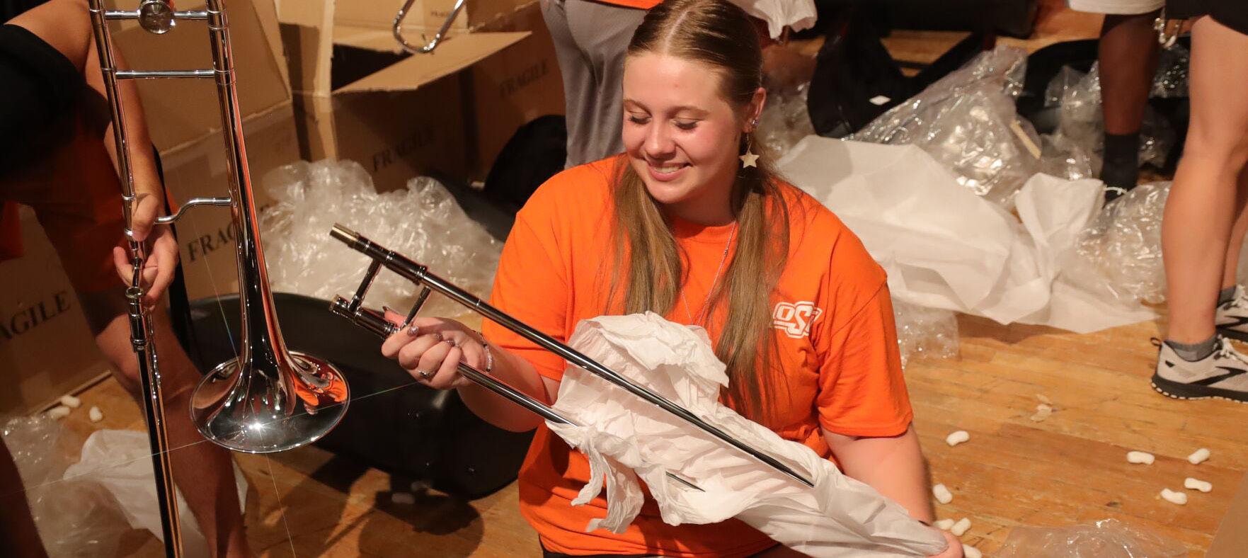 After months of development—and weeks of shipping delays— the CMB trombone section finally received the new instruments before rehearsal on Sept. 8. In the Seretean Concert Hall, the 30 musicians wasted no time in opening the packages.