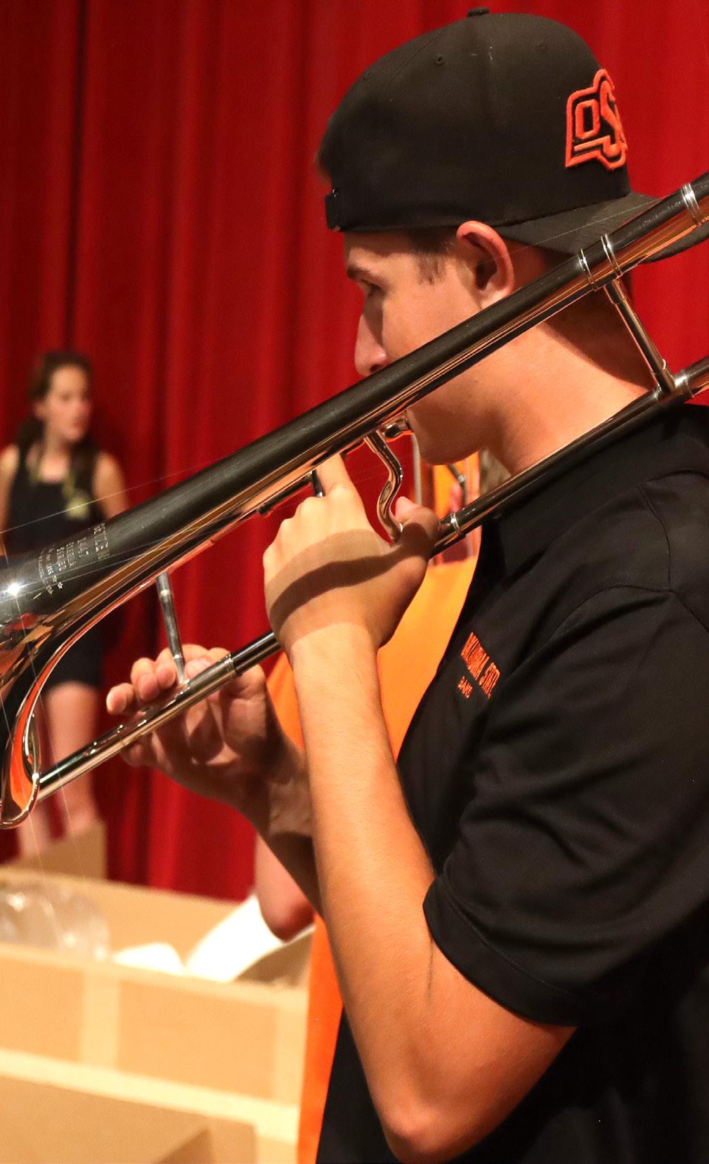 The band is equipped with with 40 custom silver trombones, donated by OSU and CMB alumni Bob and Pam Spinks.