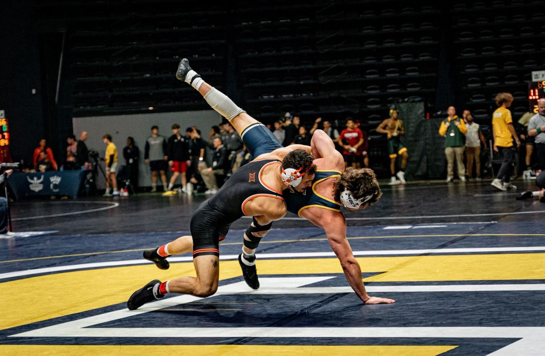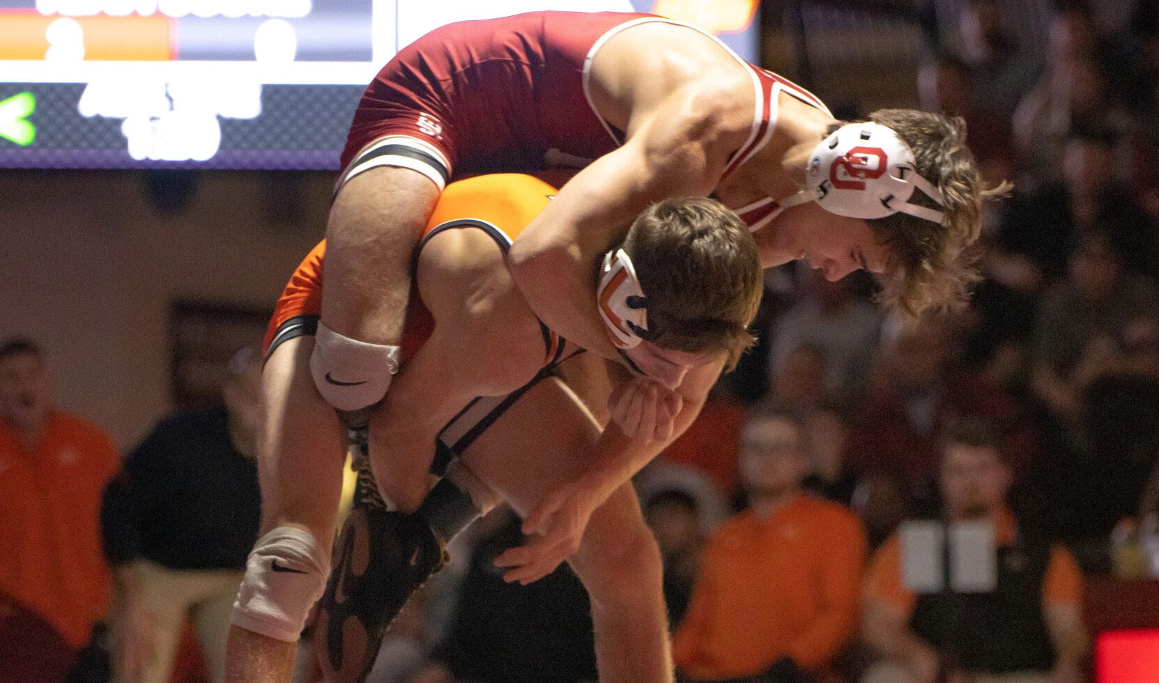 A tech fall and a decision victory was how Carter Young, OSU’s 141-pounder, started the tournament. He finished with a 3-3 record in the Scuffle.