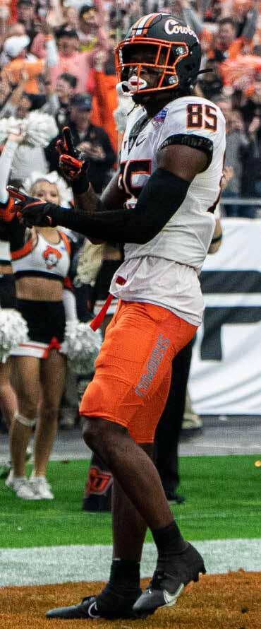 Bray, OSU’s soph omore vertical threat receiver is out with a left arm injury suffered in fall camp. In 2021, Bray grabbed two touchdowns in 12 games.